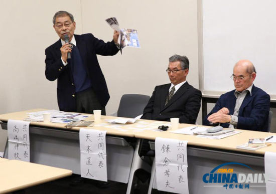 2013年11月11日,在日本东京,“继承和发展村山谈话会”共同代表、琉球大学名誉教授高岛伸欣在新闻发布会上发言。当日,日本政界和学界人士在东京成立“继承和发展村山谈话会”,旨在坚持反省二战中日本的侵略和殖民行为,推动日本继续走和平、非战道路。(新华社记者 刘天 摄)