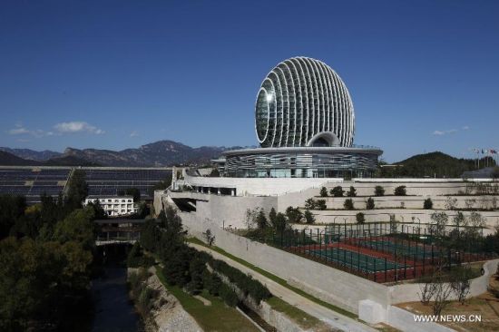 2014年亚太经合组织领导人非正式会议将于11月在北京怀柔雁栖湖举办。图为雁栖湖畔的会议场馆——北京日出东方凯宾斯基酒店。
