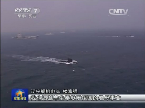 资料图:央视视频显示多艘核潜艇为“辽宁”舰航母护航