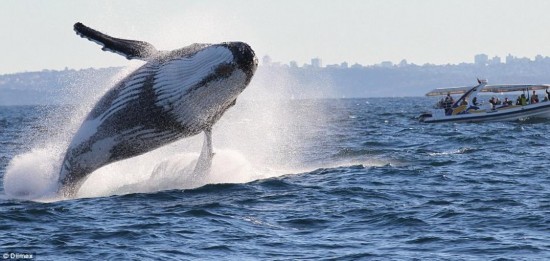 当地时间27日15时30分,一头重约40吨的座头鲸在距悉尼港入口仅仅2公里的地方跃出海面,向游客们展示了它令人惊叹的身形。