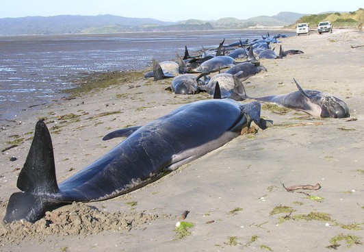 新西兰送别角频繁发生鲸鱼搁浅事件。