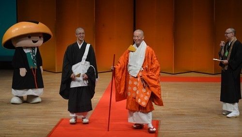 活动中,“花美僧”们配合着音乐登场。兵库县尼崎市的家庭主妇小津奈绪(35岁)激动地说:“这些僧侣都是花美男,非常激动。”(图片来源:日本《每日新闻》)