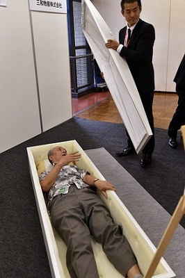 【延伸阅读】日本举办殡葬展 参观者躺进棺材体验身后服务(图)