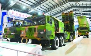 在2号馆航天科工集团展区,“FM-3000中近程防空导弹武器系统”与“FD-2000远程防空导弹武器系统”并排陈列,非常醒目,不仅有导弹1∶1仿真模型,还有迷彩装的导弹发射车、制导雷达车整体亮相。