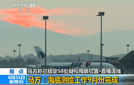 综合媒体报道,马航MH370客机失联已经过去了5个多月,飞机的下落以及飞机上的乘客一直牵动着各国人民的心。马来西亚交通部长廖中莱8月30日表示,客机的搜寻工作有了新的进展。他说:虽然,马航MH370客机的海床测绘工作已接近尾声,不过,国际搜寻团队已在南印度洋海域锁定了58处疑似有飞机残骸的位置,水下搜寻设备将于近期开展搜寻工作。