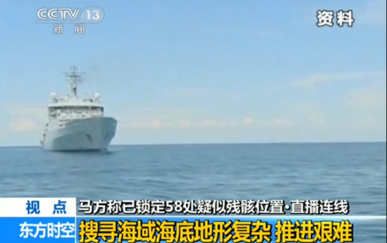 mh370残骸位置锁定,已鉴定58个可能有残骸海域。(央视新闻截图)
