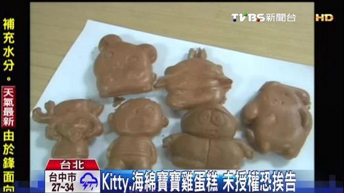 中新网8月17日电 据台湾TVBS网站报道,很多人喜欢吃的小点心鸡蛋糕,近几年开始出现卡通造型,举凡多啦A梦、神奇宝贝、海绵宝宝、Hello Kitty这些热门卡通,都变成鸡蛋糕主角,很多小朋友就是因为外型可爱,想要买,而家长也乐意买单。但现在却传出,这些模具其实根本没经过代理商授权,要是认定有侵权行为,业者恐怕会挨告。