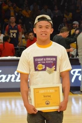 中新网11月18日电 据美国《世界日报》报道,洛杉矶哈冈(Hacienda Heights) Los Altos高中12年级华裔学生杨司宇(Patrick Yang),16日获湖人单月杰出学生奖(Student & Educator of the Month)。