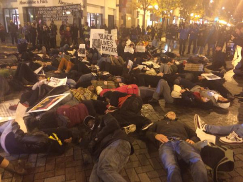 弗格森市民众下跪抗议陪审团决议(法新社)