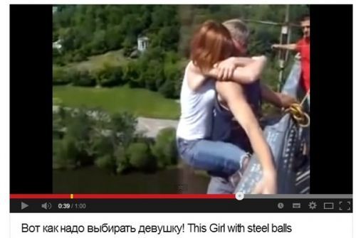 中新网11月22日电 俄罗斯被称做“战斗民族”,如今看来果真名不虚传日前,一名俄国女子陪同男友玩高空弹跳(即蹦极),但她并未穿上任何装备,而是直接抱着配备齐全的男友一跃而下,当场吓坏旁人。