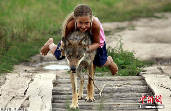 【延伸阅读】“战斗民族”将狼当宠物 10岁女孩骑狼狂奔(图)