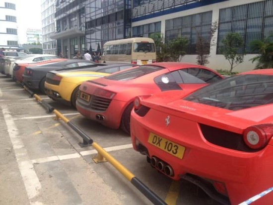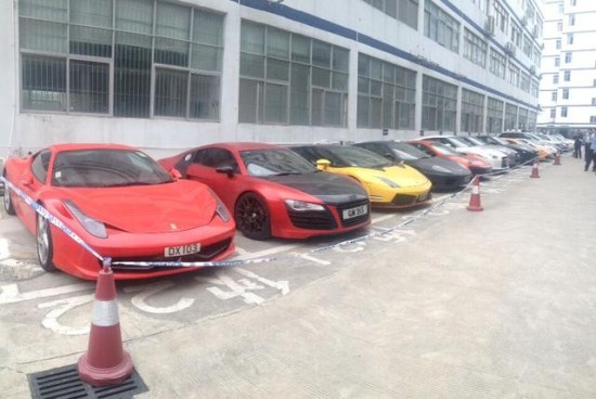 记者在昨日深圳交警侦查大队办公楼前,见到11辆超级跑车,其中有3辆GTR,3辆法拉利、3辆迈凯伦,1辆兰博基尼。