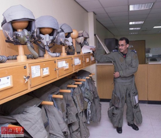 美国和沙特阿拉伯、巴林等几个阿拉伯国家在叙利亚当地时间23日凌晨空袭了叙境内的极端组织“伊斯兰国”(IS)目标。沙特新闻网站《萨巴格》报道说,沙特皇家空军飞行员23日驾机对位于叙境内IS目标实施打击后安全返回。飞行员中有沙特王储兼国防大臣萨勒曼的儿子哈立德亲王。图为沙特空军飞行员完成空袭后在一个未知地点坐在战斗机驾驶舱内。