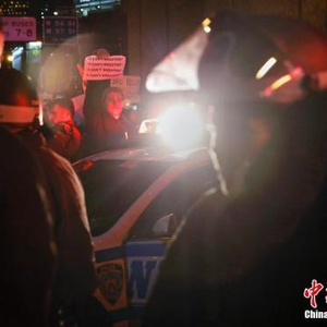 不过,相较弗格森骚乱的混乱场景,纽约的示威人群显得较为平和。纽约市长白思豪在大陪审团做出裁决后就曾呼吁和平示威,并称“以非暴力抗议表达意见是纽约强有力且令人骄傲的传统”。