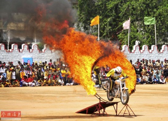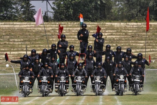 【延伸阅读】印度独立日上演摩托车“叠罗汉”