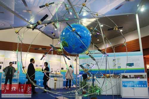 资料图片:2012上海第二届军民两用技术促进大会暨项目对接会上展示的北斗卫星系统模型。