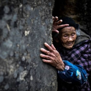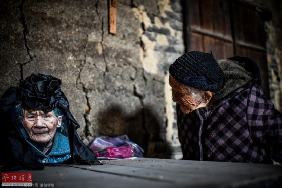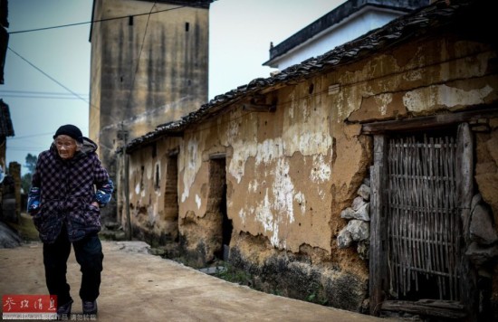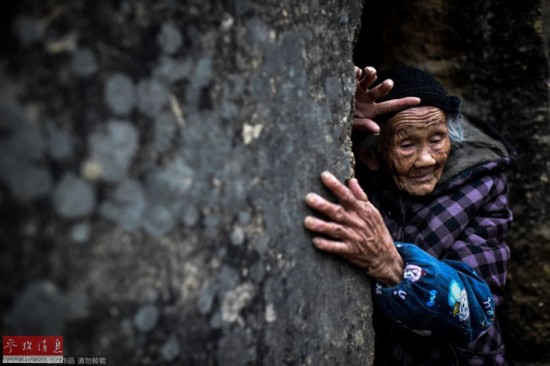 带着无比屈辱的记忆,走过残缺、痛苦不堪的一生,2014年11月26日,广西荔浦县新坪镇广福村城里屯的何玉珍老人走了。曾经与何玉珍一样被关押在“马岭沙子岭慰安所”的“慰安妇”,如今已知的,只剩下新坪镇桂东村小古告屯的韦绍兰一人,而她,也在血泪的控诉中慢慢老去。12月2日,记者来到小古告屯,见到了韦绍兰老人。图为2014年12月2日,倚在这面慰安所旧址的墙角上,老人的苍老面孔和历经大半个世纪的这座建筑一样斑驳和沧桑,共同讲述着那段不容忘却的历史。(图片来源:东方IC)
