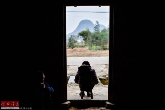 2014年12月2日,韦绍兰坐在门口,她被日寇凌辱后生下的儿子坐在门后。一对共同生活了几十年的母子,却很难如平常母子那般连心,曾经噩梦般的经历,始终是韦绍兰心里迈不过去的一道坎。(图片来源:东方IC)