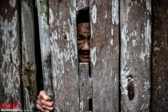 韦绍兰的家在小古告屯的公路边,一所破败不堪的黄泥房光线昏暗,冷风不断从塑料布糊起的窗口吹进来。韦绍兰蜷缩着身子,坐在结满蛛网的房梁下,静静地看着窗外,一言不发地像一尊雕塑,似乎在等着造访者发问。图为2014年12月2日,这一扇当年囚禁过韦绍兰的残破木门,在之后的岁月里就像一道沉重的心灵枷锁,禁锢了老人大半个世纪。(图片来源:东方IC)