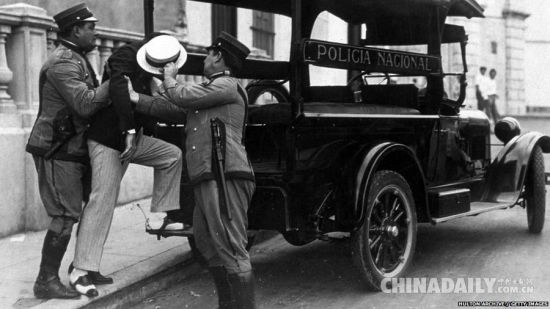 1902年,古巴摆脱美国控制获得独立。然而到1934年,美国一直保留对古巴内政的干涉权利。这张摄于1935年的图片显示, 哈瓦那警察扣留了当时的一名反政府嫌疑犯。(图片来源:Getty)