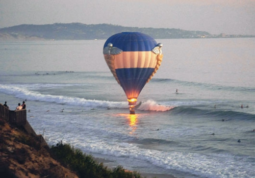 当女友应允后不久,热气球突然失控,操作员无法转向让气球飞回海滩,于是设法让热气球降落海面。