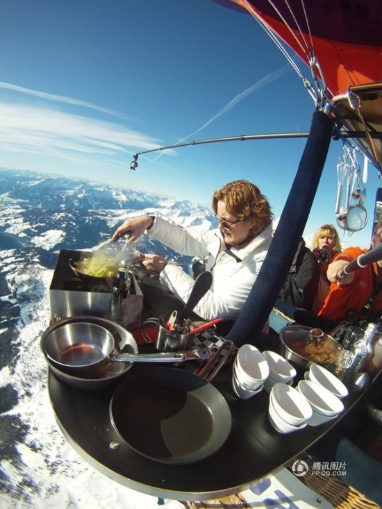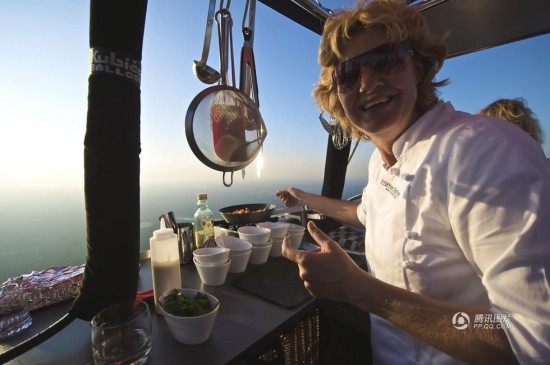 9月11日报道(具体拍摄时间不详),一名荷兰顶级大厨Angelique?Schmeinck将餐厅“搬上”了热气球,她利用热气球在上空的强大对流进行烹饪。Angelique75分钟内为14位客人分别做了三道菜,世界各地游客慕名而来,边在空中“飞翔”边体验别致的空中美食。