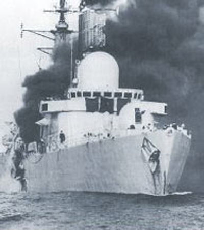 资料图片:被阿根廷空军击沉的英军“谢菲尔德”号驱逐舰(图片源于网络)