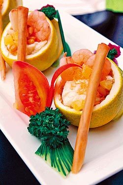 中新网1月14日电 据台湾《中国时报》报道,橙子不只是水果,还能做成各式各样糕饼甜点等,但最特别的是入菜。台湾云林县剑湖山王子大饭店中、西总铺师创意巧思,以在地盛产的橙子为食材,烹调出柳橙系列美味佳肴,色香味俱全,令人食指大动。