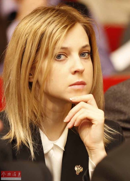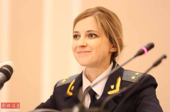 克里米亚美女检察官娜塔莉亚·波克隆斯卡娅被列入欧盟制裁名单,制裁理由是其“积极贯彻将克里米亚并入俄罗斯”,制裁措施包括禁止其进入欧盟境内并冻结其资产。图为3月11日拍摄的娜塔莉亚·波克隆斯卡娅参加发布会的资料图片。