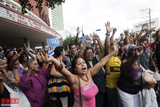12月17日,在古巴首都哈瓦那,遭美国扣留古巴囚犯返国,民众为国家英雄“古巴五人组”欢呼。美国释放了“古巴五人”中的剩余三人。