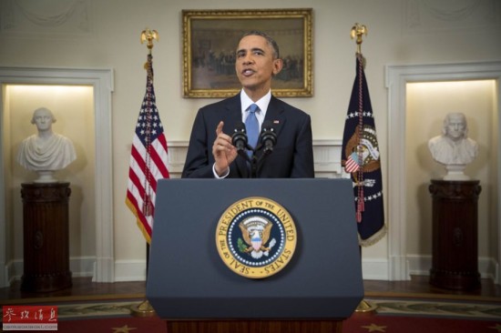 奥巴马17日在白宫发表讲话说,美国将终止过去半个多世纪对古巴执行的业已“过时的”政策,转而寻求开启两国关系“新篇章”。国务卿克里将就恢复两国外交关系与古巴进行磋商,美国将于今后数月内在古巴首都哈瓦那重建大使馆。奥巴马说,他还指示克里重新审视把古巴列为支持恐怖主义国家的问题,白宫将就取消对古巴长达半个多世纪的贸易禁运与国会进行磋商。与此同时,美国正在采取措施扩大与古巴的旅游、贸易量等。图为12月17日,在美国首都华盛顿,美国总统奥巴马发表讲话。