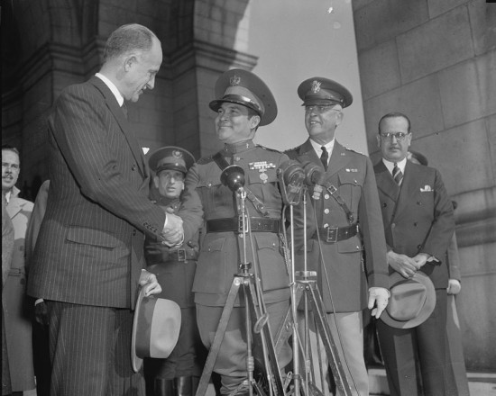 上世纪30年代至50年代末,美国大力扶持古巴的巴蒂斯图塔独裁政权。图为1938年11月10日,访美的巴蒂斯图塔(穿军服者)与美国陆军参谋长握手。