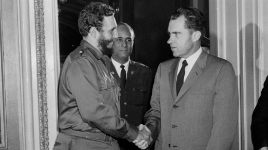 古巴革命胜利初期,美古关系十分微妙。1959年4月菲德尔·卡斯特罗访美,图为他在华盛顿与时任美国副总统尼克松握手。