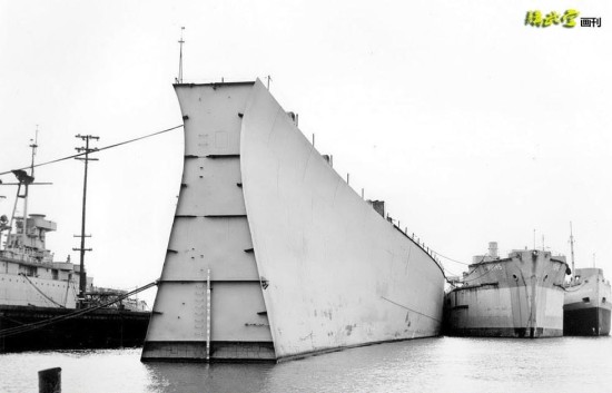档案6:肯塔基号战列舰,衣阿华级六号舰。当美国海军打完二战后发现个问题:舰造得太多了。还在船台上的衣阿华级五、六号舰处于食之无味,弃之可惜的鸡肋状态。正巧,1956年,衣阿华级威斯康星号因撞船舰艏受损,海军发现最经济的方法是用姊妹舰的零件搞个“移花接木”,于是肯塔基号光荣充当了“器官捐赠者”。现在剩下个没头船体拆了就不可惜了,1958年,肯塔基号被除籍并出售拆解。