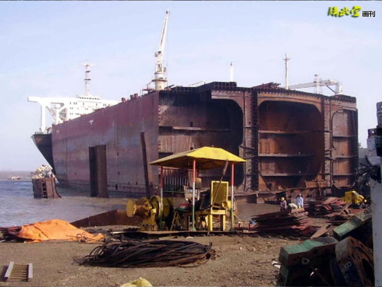 俄国人不要的废铜烂铁成了中国拆船商眼中的宝贝,位于江苏的某拆船公司就因其显赫的拆船业绩被誉为“拆掉半支俄国太平洋舰队的地方”。其经手舰船不乏现代级驱逐舰和基洛级潜艇这样的先进型号,图为基洛级首艇B248号在靖江待拆。