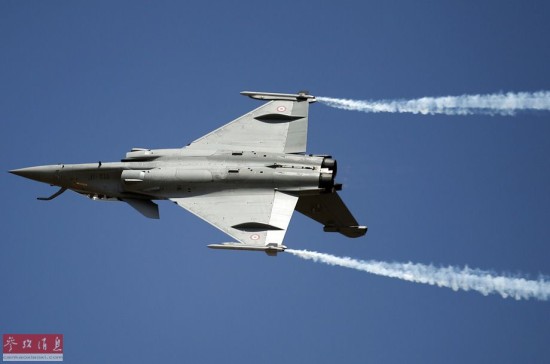 资料图片:在印度南部城市班加罗尔附近的耶拉汉卡空军基地,一架法国“阵风”飞行表演。新华社