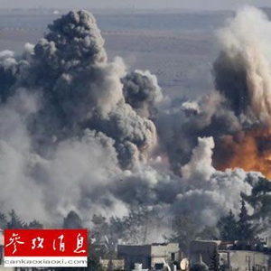 10月18日,以美国主导的空中力量对叙利亚科巴尼境内的“伊斯兰国”极端组织进行轰炸,现场浓烟滚滚。(路透社)