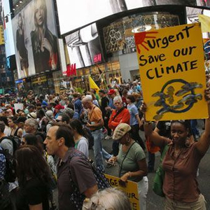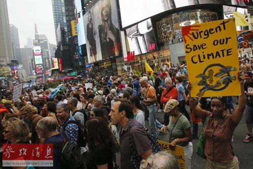 9月21日,数以万计的民众在纽约时报广场就全球气候变化问题举行集会。
