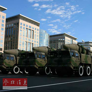 资料图:2009年10月1日,首都各界庆祝中华人民共和国成立60周年大会在北京举行。这是某新型中远程地地常规导弹方队接受检阅。新华社记者 谢环驰摄