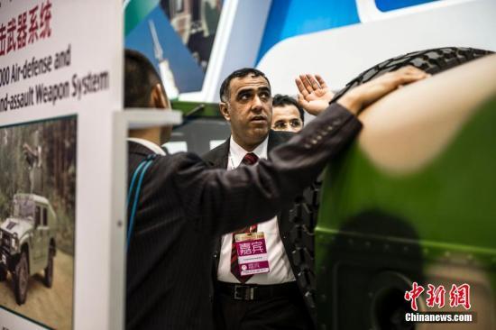 11月12日,2014第十届中国国际航空航天博览会进入第二天,展馆内各式各样的展品模型吸引了不少境外观众的眼球。中新社发 龙宇阳 摄