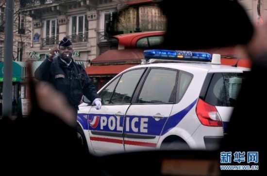 1月7日,在法国巴黎,警察在街头检查过往车辆。位于法国巴黎的《沙尔利周刊》总部7日遭到武装分子袭击,目前已造成12人死亡,另有多人受伤。法国总统奥朗德强烈谴责此次袭击。他在袭击现场说:“这无疑是一起恐怖袭击。”新华社记者陈晓伟摄