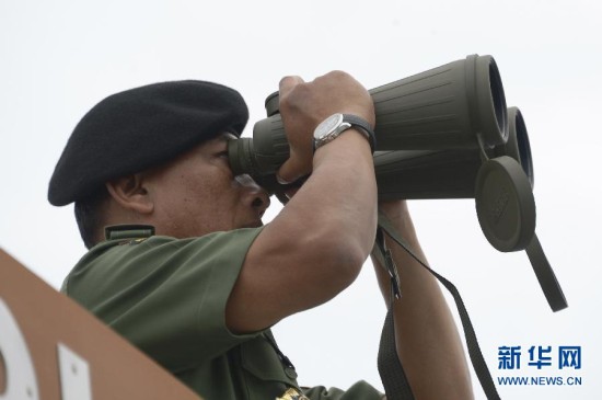 1月8日,在亚航失事客机坠毁海域,印度尼西亚国民军司令穆尔多科视察失事亚航客机的打捞工作。印度尼西亚官员8日说,搜救人员决定于9日打捞亚航失事客机机尾残骸,黑匣子是否仍在机尾处尚有待进一步确认。 新华社发
