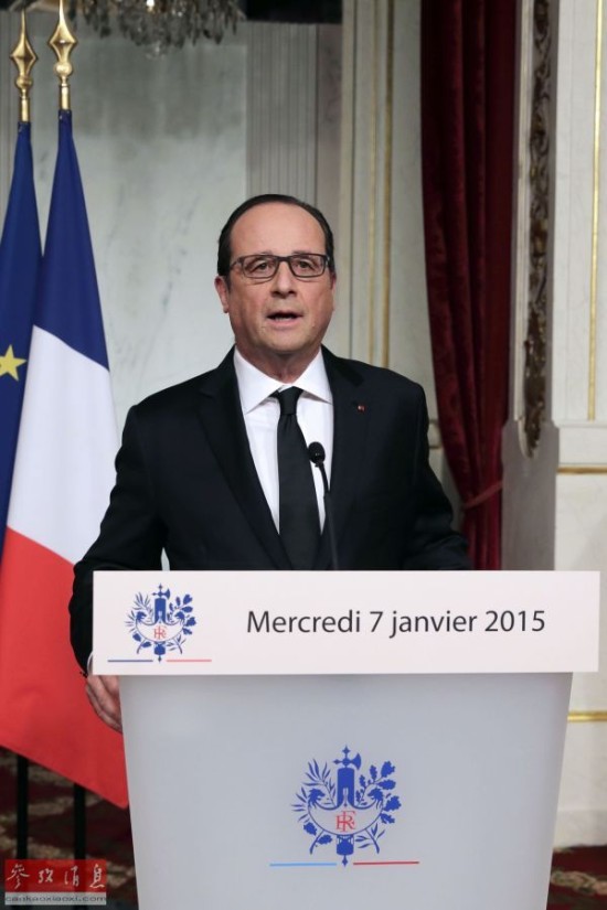 法国总统奥朗德就巴黎恐怖袭击事件发表讲话。新华/法新