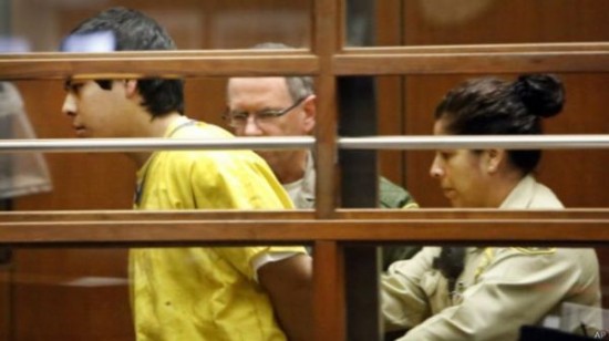 1月12日,杀害中国留学生纪欣然的嫌犯之一安德鲁·加西亚被法警带上洛杉矶高等法院;他和另外三名嫌犯被正式起诉。