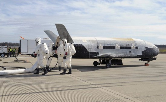 2014年10月17日,美国加利福尼亚州的范登堡空军基地,X-37B轨道测试飞行器完成第三次任务,在跑道上降落。此次试飞共在轨道逗留近两年期间。自2010年第一次试飞以来,美国空军的X-37B空天飞机便吸引着无数太空迷的目光。这款空天飞机酷似一架迷你版的航天飞机,机身长只有29英尺(约合8.8米),翼展15英尺(约合4.6米)。对于X-37B从事的任务,美国军方一直严格保密,促使太空迷提出了各种各样的猜测。