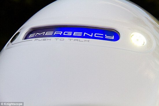 目前为止,该公司已经制造了7个机器人,并计划年内再制造4个。发明者称,相信这些机器人的运用能够减少一半的犯罪率。图为机器人身上的紧急按钮。如果有人遇到危险可以按下紧急按钮直接和控制中心对话。(图片来源:《每日新闻》)