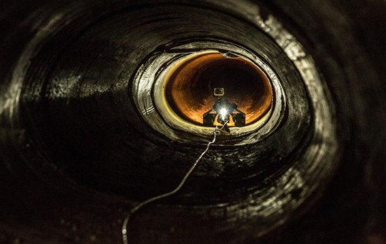 2013年9月,美国亚利桑那州的诺加莱斯,管道机器人“伊努克顿”正在狭窄的管道内移动。“伊努克顿”为边境巡逻队研制,用于勘察人类无法进入的狭窄管道。它的前部装有摄像头,将画面传输给操作人员。操作人员利用控制器对其进行操控。