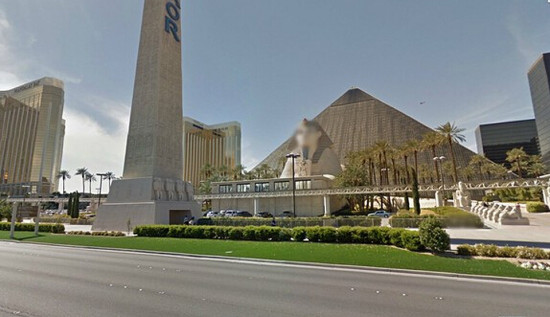 谷歌街景里神像的脸都被码掉了。许多神像的脸都被谷歌机器人弄模糊了。图为拉斯韦加斯的狮身人面像。