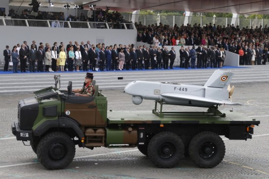 2014年7月14日,法国巴黎的协和广场,第61炮兵团的SDTI无人机亮相巴士底日大游行。