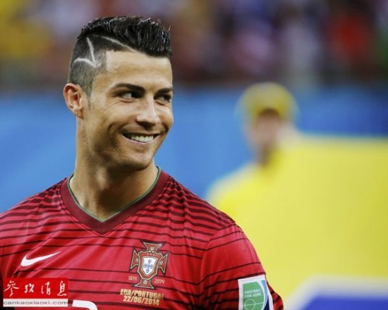 资料图片:2014年巴西世界杯,克里斯蒂亚诺·罗纳尔多在同美国队的小组赛中的发型(路透社)